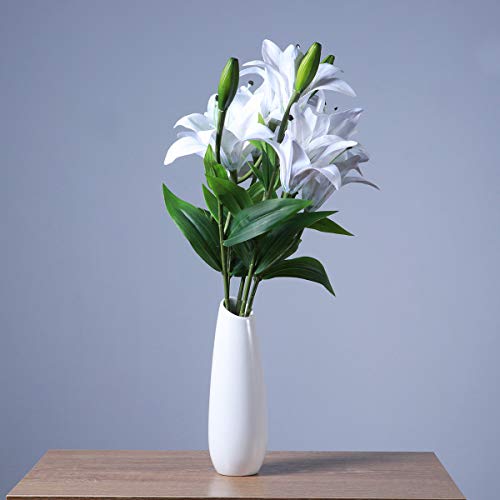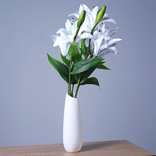 Healifty 1pc人工花リリーシミュレーションフラワープラスチック人工花の花束ホームウェディングデコレーション(ホワイト)