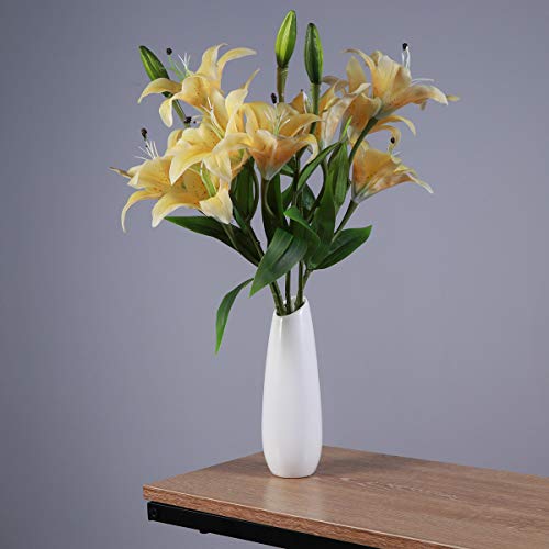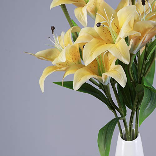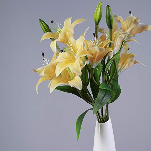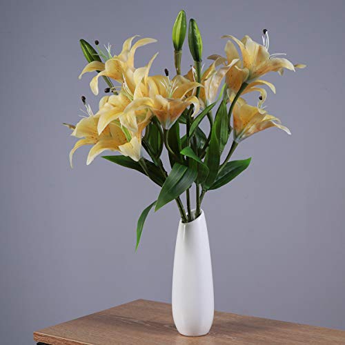 Healifty 1pc人工花リリーシミュレーションフラワープラスチック人工花ブーケホームウェディングデクレーション(イエロー)
