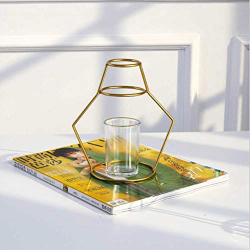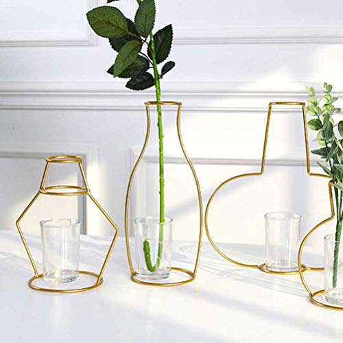 Healifty アイロンテーブルの装飾花瓶のアイロンヴィンテージホームデコレーションドライフラワー(ゴールドの菱形のボトル)