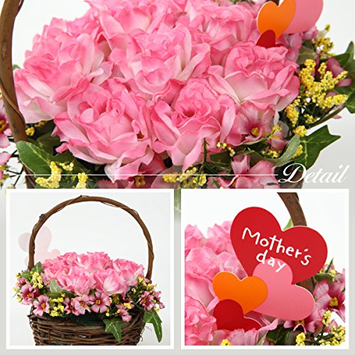母の日 お花バスケット造花 母の日パッケージでプレゼントに最適 花 ギフト プレゼント 誕生日プレゼント 発表会 贈り物 母の日 早割/母の日 プレゼント/母の日ギフト/母の日ギフト/母の日 花/母の日 プレゼント/お花/母の日限定 (母の日 お花 バスケット/ ピンク)
