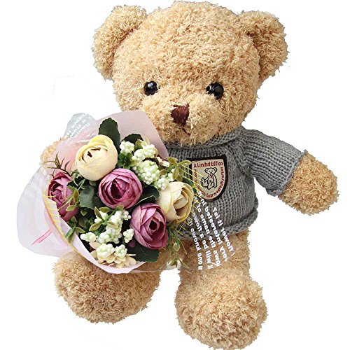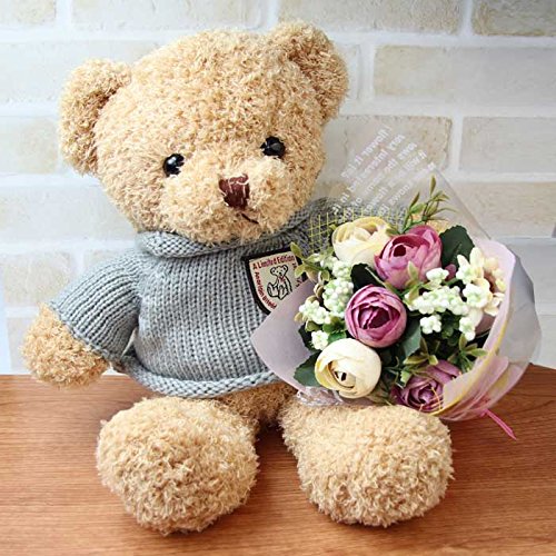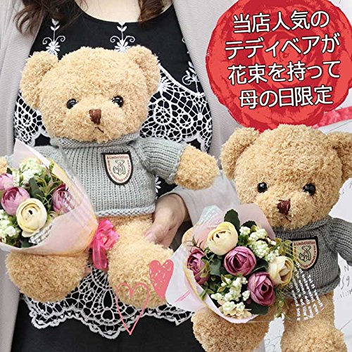 全長H35cm(お座り24cm)・お目めが愛らしい~! お子様から大人まで幅広い年代に愛させるテディベアです。 母の日限定花束を持ってお花とテディベアのセット。