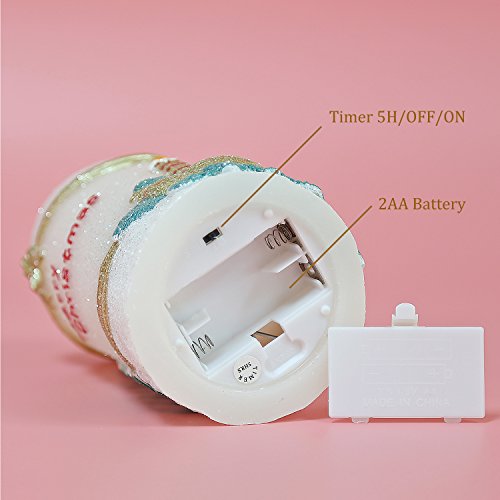 機能が導入されています。 – Candle寸法高さ、幅6 " X 3 "(1パック) – 本物のワックス – クリスマステーマ:冬のシーンとristmasボールと、キャンドル、christamsツリー – タイマー – 5hrオプション – 2 AA電池含まれてい