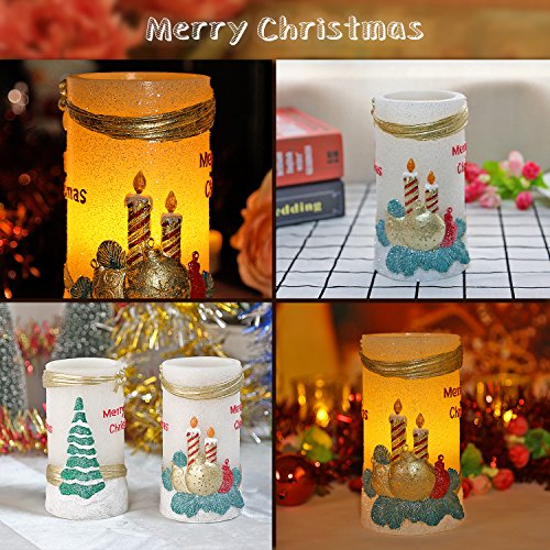 クリスマスwithフレイムレスキャンドルタイマー、電池式キャンドルクリスマスデコレーション用、3 x 6インチ