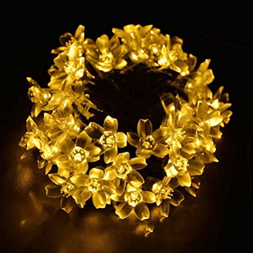 7メートル50灯の桃の花ソーラーライトストリング暖かい白 防水 室内外 結婚式 庭対応 ledストリングライト