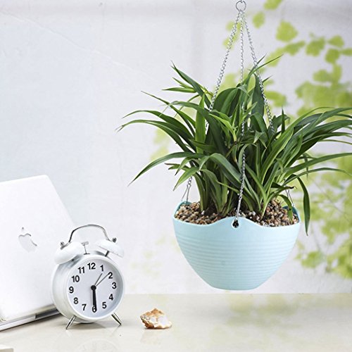吊り鉢 プラスチック製 ポット ハンギングチェーン、プラグやウォータースクリーン付き ホーム 庭 室内 ハンギング 鉢 観葉植物 多肉植物 プラントポット 鉢 吊り下げ (ブルー)