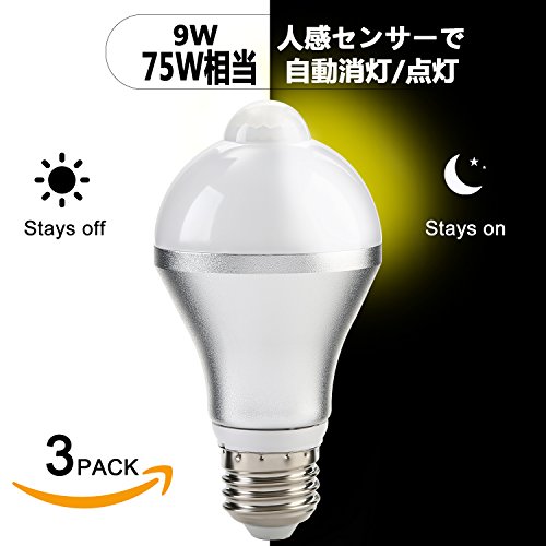 Hengu 9w人感センサーライト&明暗センサーライト 3個入り 60w相当 自動点灯/消灯 探知範囲:120°/5m 電球色3000k E26 640lm トイレや廊下や物置など消し忘れの多い場所に最適!