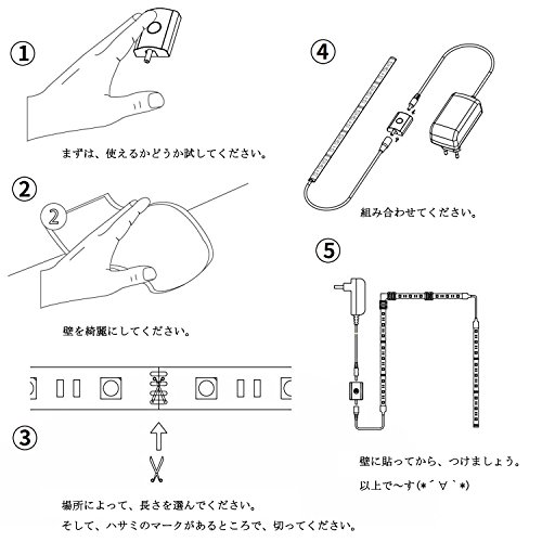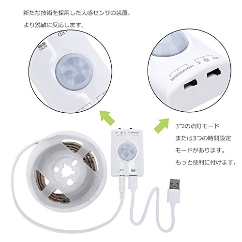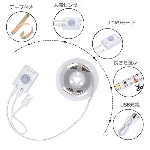 【充電】USB充電 (USBコード付き) 赤い光:充電中 ブルー光:充電終わり 【仕様】LED人感センサテーブライト 輸入電圧:12v ワット:2.4W ルーメン:22-24(lm) 発光ビーム:120° LEDチップ:30LED/m 色温度:3000k 材料:pcb 設計寿命:50000h 防水:IP65 重量:100g サイズ:135*4*1.5cm 【ひとせんさで点灯/消灯・3つモード】off:電気消え ☼太陽:人感センサーのみ ☾月:明暗センサ&人感センサ 2in1 (暗くなると人感センサで点灯) 点灯時間設置:15S/130S/380S 【簡単の取り付け・柔らかいテープ】両面テープもマグネットも付き、ダブルの粘着方式、よりしっかり!<br> 本体は柔らかいテープなので、曲げることもできます。また、カットすることもできます 。お好きな形及び長さを選んでください。 【あなたの声を大切にします】当店の製品をご購入して頂く皆様には、心より感謝の意を表させていただきます。当製品に12ケ月の安心保証が付きますので、商品自身には品質的な問題があれば、当店は責任を持って、返金や交換などのアフターサービスを提供致しますので、是非お気軽にご連絡下さい。