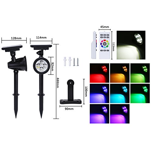 Henguソーラーライトリモコン付きRGB調光 高輝度 防水IP65 10時間続き 配線不要120°角度調整可 明暗センサーガーデンライト/スポットライト/ブラケットライト 屋外の歩道/車道/芝生/庭/壁など