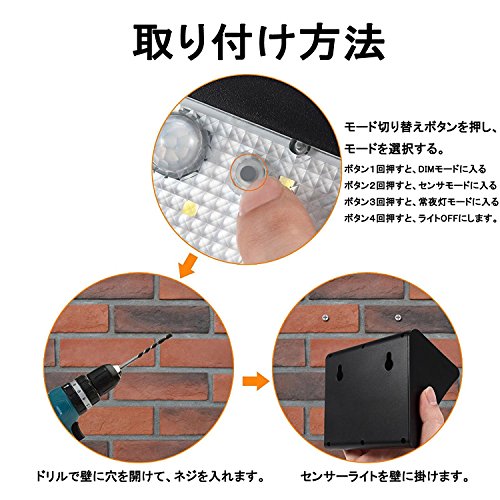 LEDライト:38個 センサー感知距離:3-5M センサー角度:120°