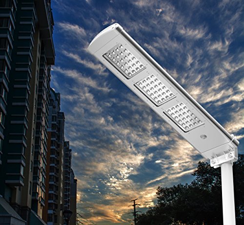Hengzhe HZ-JKCJP 感知センサーで省電力モード LED街路灯 ソーラー式 LED投光器 ソーラー街灯 ソーラーLED街路灯 庭園灯 防犯防水灯ライト看板・単管・パイプ取り付け金具付 ((30w 1098*227*164mm, シルバー)