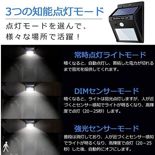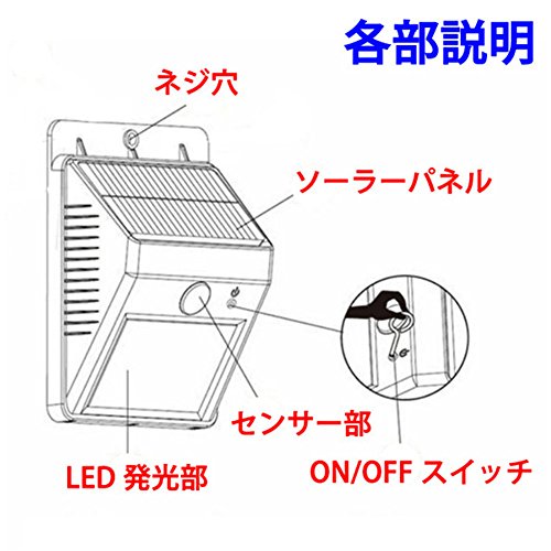 - ■最高光の20LED採用,もっとバージョンアップLEDソーラーライト 壁掛けウォールライト 人体感知 ソーラー充電式.防水・配線工事不要。設置して電源ボタンをピンでONにするだけであとは自動。日中に太陽光充電し、暗くなると人感センサー式のライトになります。