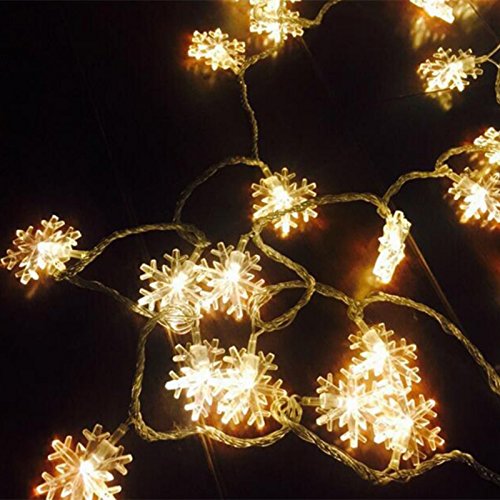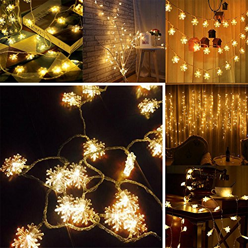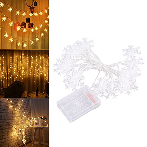 HiCollie イルミネーションライト led 電池式 クリスマス 飾りライト スノーフレーク 常時点灯 点滅 二つモード 電池別売り (3M, ウォームホワイト)
