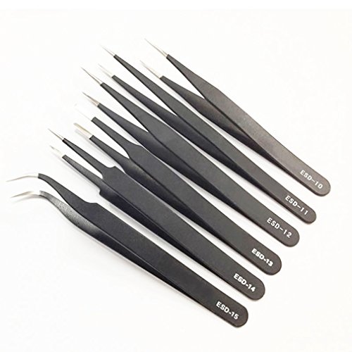 HiLetgo 6PCS 静電気 防止用 ピンセット キットセット ESDステンレス スチール ピン セット キット ESD-10 ESD-11 ESD-12 ESD-13 ESD-14 ESD-15すべての目的用 ツイザー ツール キット [並行輸入品]