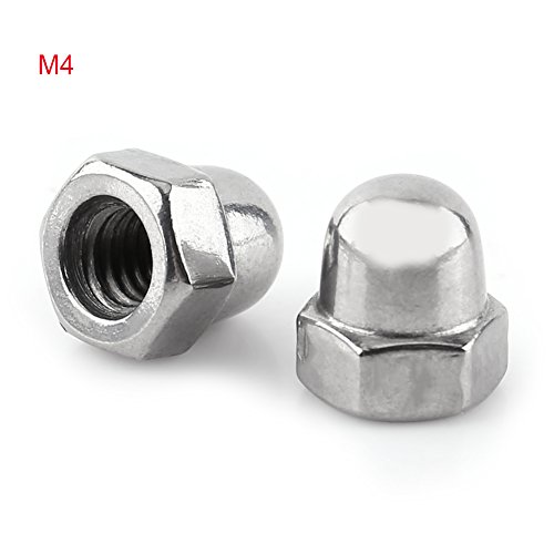 ボルトベースM3/M4/M10アクロンナットステンレスSS304ドームヘッドキャップヘックスナット(100個/25個)、シルバーカラー(M4(100/パック))