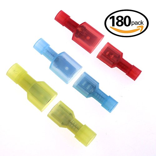Hilitchi 180pcsナイロン完全絶縁オス/メススペードクイック切断ワイヤワイヤクリンプ端子コネクターセット