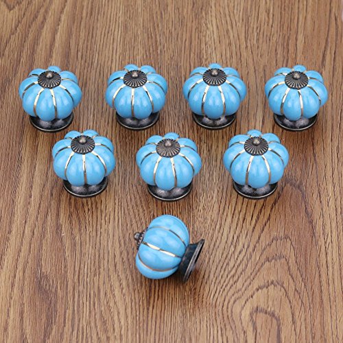 Hilitchi 8pcsヴィンテージPumpkinスタイルセラミックキャビネット引き出しドアプルノブハンドル(ブルー)