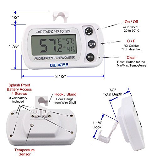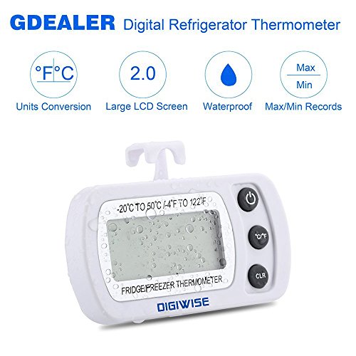 - 摂氏範囲(-20℃~50℃)、華氏範囲(4°F~122°F)をデジタルで表示出来るシンプルな冷蔵庫用温度計。