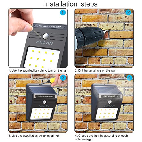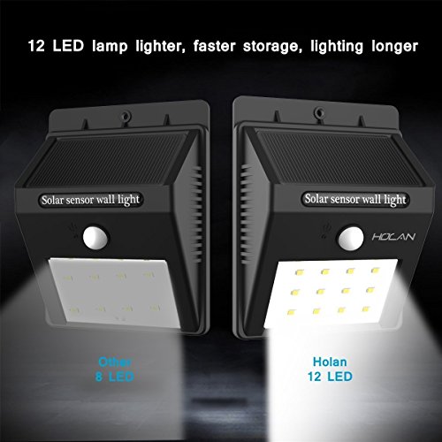 Holan ソーラーライト 12 LED 人感センサー 太陽発電 防水防犯 屋外照明 軒先/壁掛け/庭先/玄関周りなどのライト(2点セット)