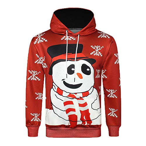 Holdego クリスマスプリントプルオーバーロングスリーブパーカースウェットシャツメンズプルオーバー オーバーサイズ長袖トップスメンズ3Dクリスマスプリントロングスリーブセータートップ裏起毛暖かい3Dプリント ユニセックス