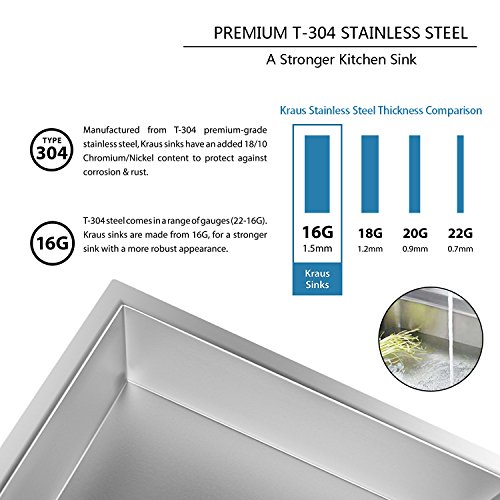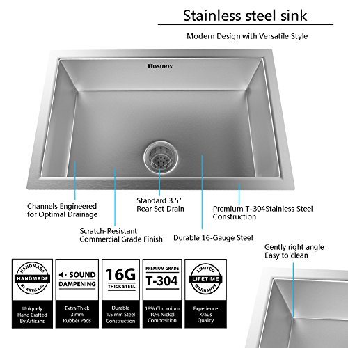 太いスチール的]は、強化されたシンク。製商用グレード16-gauge t-304ステンレススチール、このシンクは非常に長持ち、dent-resistant。
