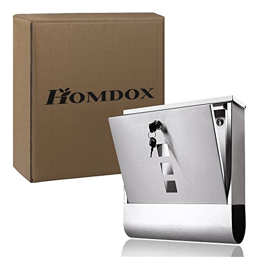 Homdoxマウントのメールボックスは多用途設計。大きいサイズのため、小さな手紙から配送業者からの大きな荷物まで大容量で保管できます。高品質のステンレススチールから作られ、耐腐食性があり、耐候性があるため長期間使用することができます。2つのキーでロック可能なドアと新聞受けにより、手紙を安全に受け取り保管できます。メールボックスは、クラシックな形状とデザインでシンプルでクリーンな美しさを提供します。それでいてきちんと家の外観としても機能する優れものです。