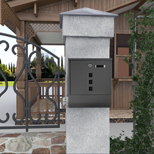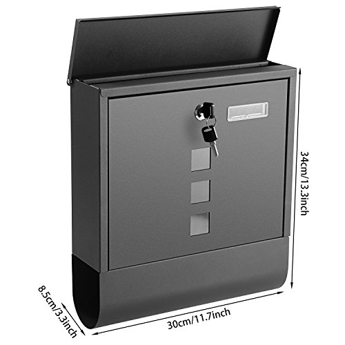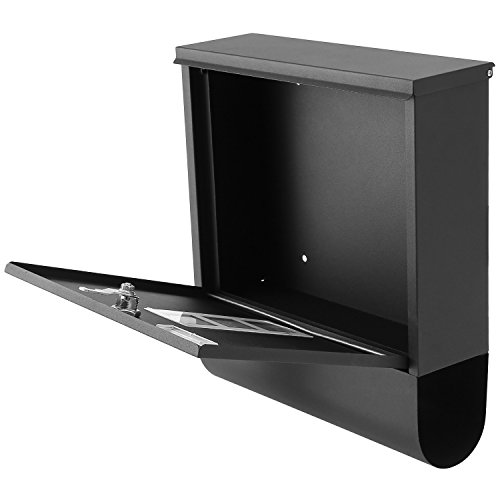 ブラック壁マウントメールボックスLarge 18インチ垂直ロックドロップメールボックスforモダンHousesフロントポーチ住宅用アウトドアRural Roadside亜鉛メッキスチールカバーメタルPostボックスキーロック可能Officeレターボックス