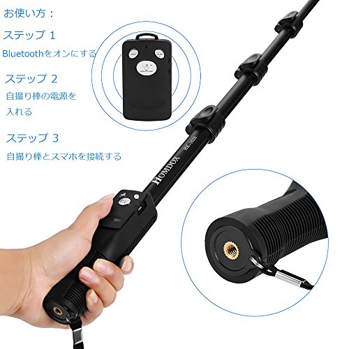 Homdox 自撮り棒 セルフィースティック Bluetooth無線 セルカ棒 3段 伸縮自在 シャッターボタン付き Gopro /デジカメ/ Android/ iPhoneスマートフォン対応