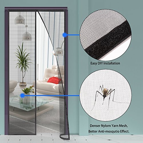 Homdox磁気スクリーンドアHeavy Dutyメッシュドアフルフレームベルクロとプレミアムハンズフリー磁気メッシュ防ぐ蚊、Keep the air fresh、ブラック 34"X 81" Max,Fiberglass Homf080