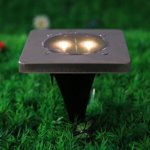 Homdox Solar Powered Ground Lights,Outdoor Ground Light Garden Landscape Lighting with 2 LEDs, Pack of 4 (Square) [並行輸入品]