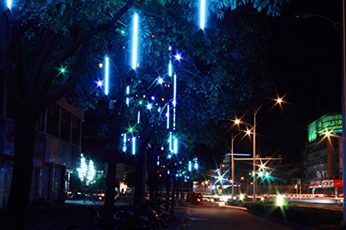Homdox Meteor Showerライト、アップグレード30 cm 8チューブ144 LED流星シャワー雨ドロップ/ライト、つららSnow Falling Raindropカスケードライトウェディングパーティー用クリスマス ブルー