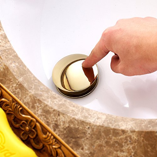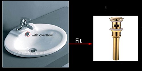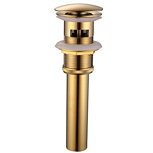 Hiendure真鍮バスルーム容器シンクポップアップオーバーフローとドレインストッパー、ゴールド