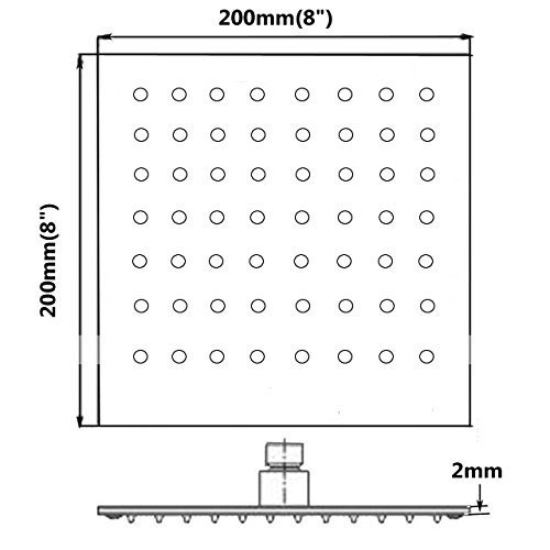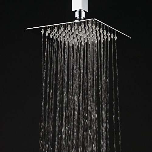 Hiendure 8 Inch Square Stainless Steel Shower Head High Pressure Rainfall Showerhead Ultra Thin Water Saving Chrome Finish [並行輸入品]