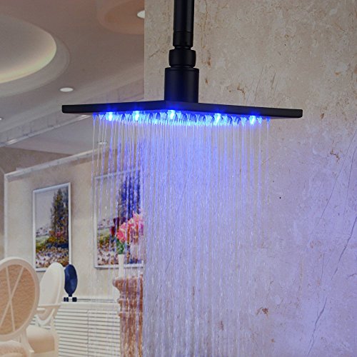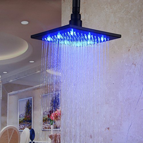 Hiendure® Oil Rubbed Bronze Stainless Steel 8 Inch Square Shower Head with LED [並行輸入品]