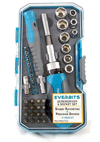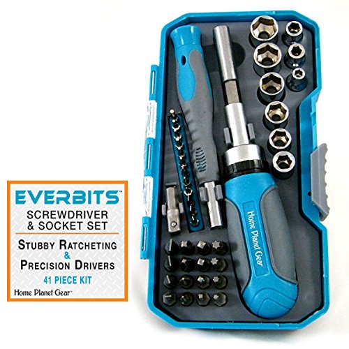 EverBits Screwdriver Set - Precision & Stubby Ratcheting with Sockets and Case. Bits: Torx, Hex, Phillips, Flat, Star, Square. Best for Home Repair, Electronics, Hobby Tool Kit. [並行輸入品]