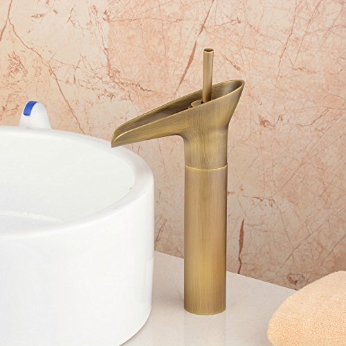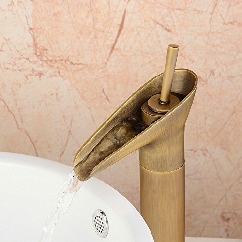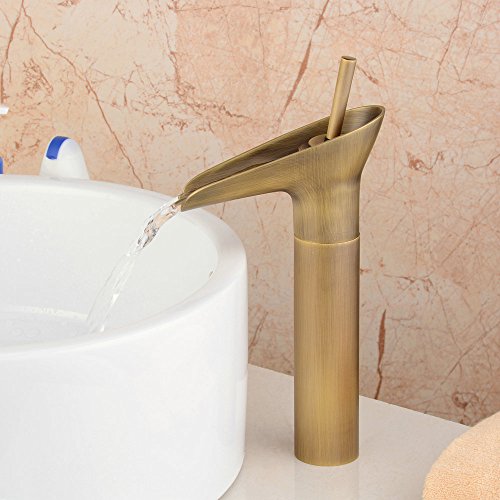 Hiendure 真鍮シングルレバー洗面器の蛇口、アンティーク 洗面所用水栓混合水栓