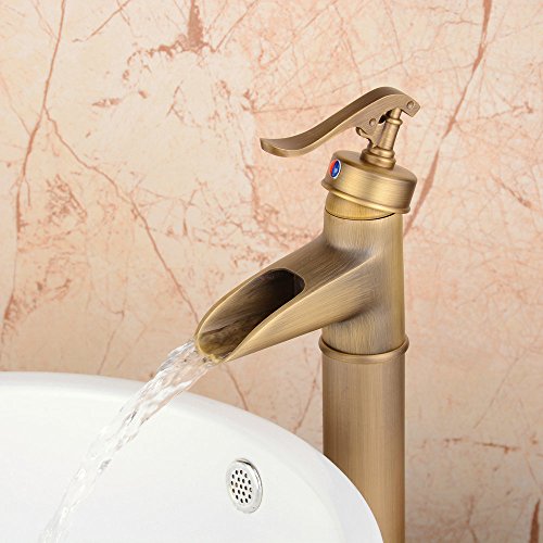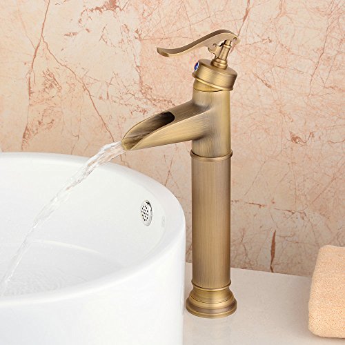 Hiendure 真鍮シングルレバー洗面器の蛇口、アンティーク
