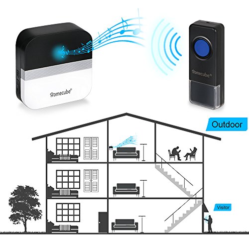 ワイヤレスチャイム HOMECUBE ドアホン 4段階音量調整 無線チャイム 58メロディー 玄関ベル 電池式 防水防塵 玄関チャイム 受信範囲500M (受信機1個 送信機1個)