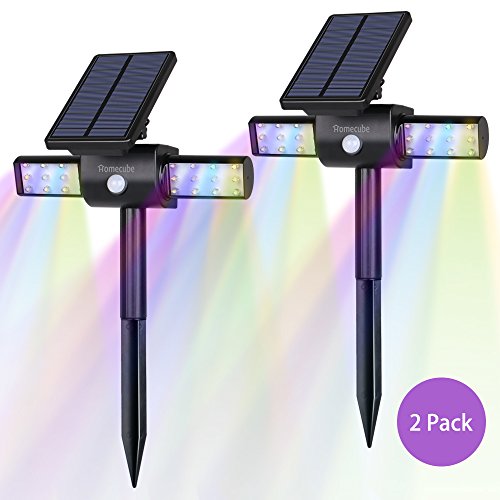 HOMECUBE ソーラーガーデンライト 屋外照明ライト LEDセンサーライト 200ルーメン アウトドアスポットライト 24個電球 コードレス USB充電 防雨 360度回転 七色光(2個入り)