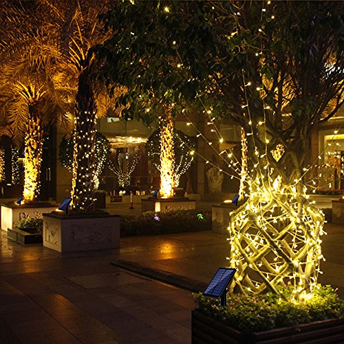 LEDイルミネーションライト ソーラーライト 屋外 ガーデンライト 4色 220球 照度人感センサーライト ハロウィーン パーティー クリスマス飾り (ホワイト)
