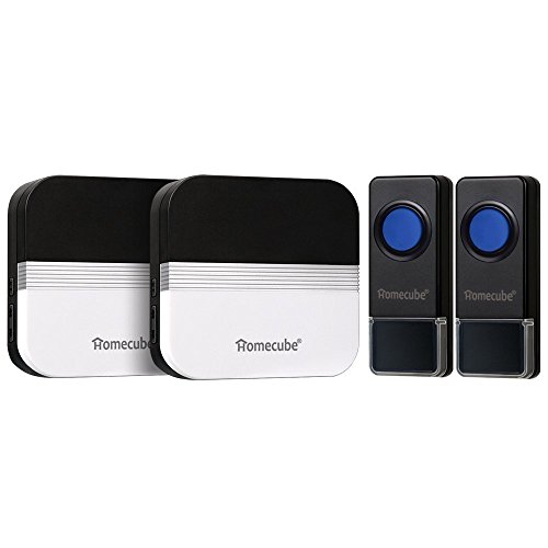 HomeCubeポータブルドアチャイムワイヤレスチャイム/ Over 1640 ft範囲58 / 2プッシュボタンwith 2プラグイン受信機4ボリュームレベルwith LEDインジケータ 2 Push Button with 2 Receivers CECOMINOD049287