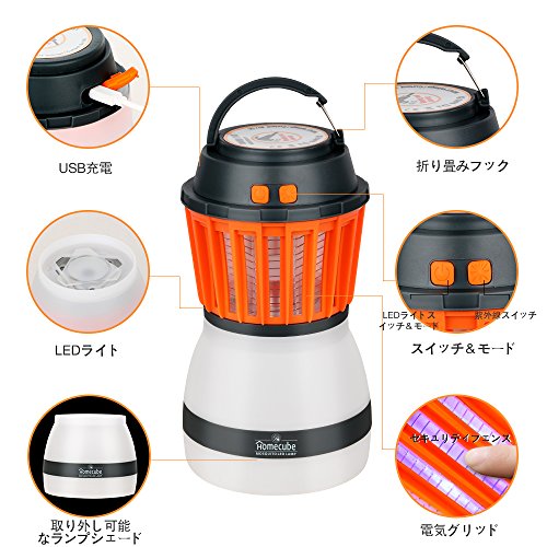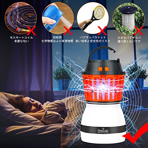 電撃殺虫器 Homecube 蚊取り器 捕虫器 殺虫ライト 誘虫灯 LED キャンプライト 蚊取りと照明両用 IP67防水機能 UV光源誘引式 無害 静か 赤ちゃんやペットにも安心 夏 台所 居間 オフィス 庭などに適用 省エネ