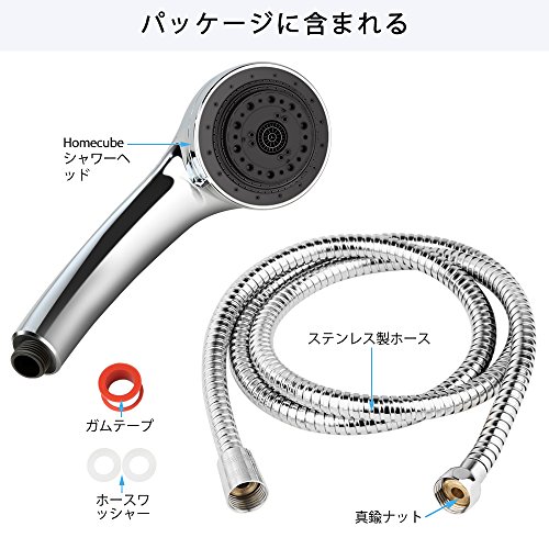 シャワーヘッド ハンドシャワー 7段階調節モード 節水シャワー クロムメッキ 1.5Mステンレス製シャワーホース付き 国際汎用基準G1/2 工具不要 簡単に取り付き Homecube
