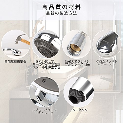 - シャワーをお楽しみに:一連の作業圧力の後、自宅で自然のSPAをリラックスして楽しむことができます。また、超高柔軟性の長い高品質の1.5メートルステンレス製ホースは、子供、ペットのシャワーに最適です!