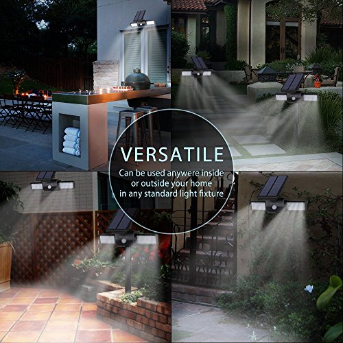 - ROTATABLE DUAL HEAD & SOLAR PANEL: Adjust the light angle to illuminate the perfect spot,It allows you to tilt the light at different angle for specific use.Adjustable solar panel to catch sunlight at optimum angle.