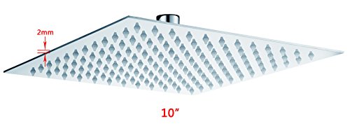 Homedec 10 " Bathoom Square Ultra Thinシャワーヘッドステンレススチール304 Rainfallシャワー