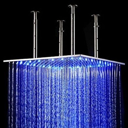Homedec 20インチLED 3色正方形Brushed真鍮バスルームRainfallシャワーヘッド