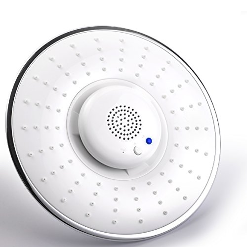 - クラシカルな防水Bluetoothシャワースピーカー付きのレインシャワーヘッド。光沢のあるクローム。