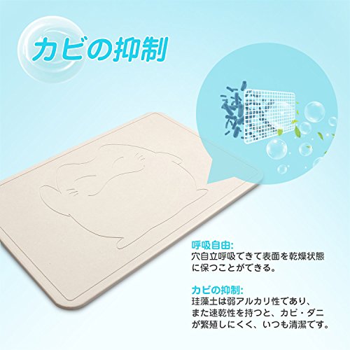 - 【調湿&防カビ&消臭】優れた調湿性の珪藻土バスマットは自発的に水分を吸収しながら水分を放出し、表面は常に乾燥した状態したを保ち,カビや雑菌の増殖を防止します。多数の微細な穴が臭いと有毒ガスを「吸着→分解→無臭・無害化」するため、消臭の役にも立ちます。