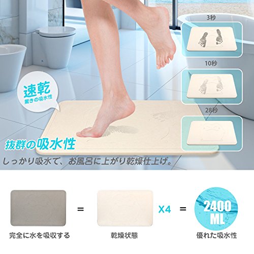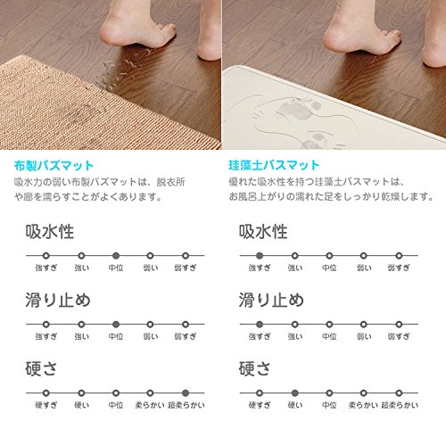 - 【吸水性&速乾性】珪藻土には無数の2-5ナミの穴があり、低密度、強い浸透性であるから、吸水力が驚異的な強さで、瞬間的に足底の水分を吸収できます。約28秒ほどで乾いてしまうのを見て取ることができます。