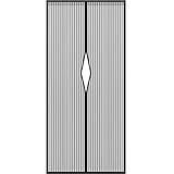 幅72インチ x 高さ80インチ フレンチドア用ハンズフリー磁気網戸 フレーム外周すべてに面ファスナーを施した防虫メッシュカーテン 虫をシャットアウトします ブラック